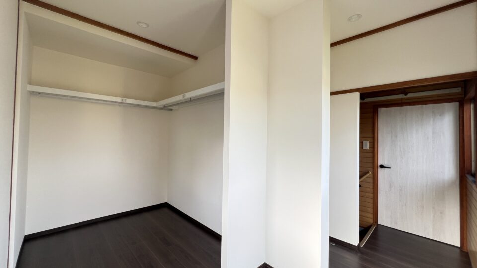 間取りも大きく変更することなく、居室とキッチン・リビングを分断していた階段下の押し入れ部分を壁のない収納スペースにすることで、プライバシーを確保した心休まる空間と生活空間が繋がった回遊できる間取りに。
